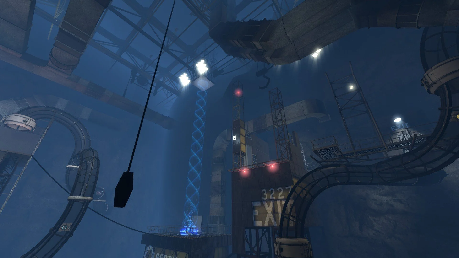 Example of leading player’s with light and environment towards the white panel and funnel high up. Normally players don’t look up unless the environment leads them to look up.